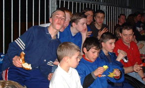 passionnés par la match... et par les buvettes et sandwicheries. Nils nous a montré le menu du basketteur alsacien moderne : Bretzel - Coca ! |