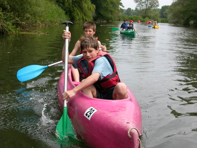 Après une pause café aux abords d’Héricourt, nous sommes arrivés à Villersexel et avons pris place à bord de canoë bi ou triplace. C’est parti pour la descente de l’Ognon, rivière calme bordée d’un paysage séduisant. Avec l’arrivée de nos treize embarcations et de leurs trente occupants, la rivière va perdre de son calme et va s’animer d’une ambiance fort agréable. Tout le monde va jouer le jeu (n’est-ce pas Nils ?) et ce ne sont pas les quelques rapides, que certaines mamans redoutaient, qui vont freiner la progression de notre groupe.